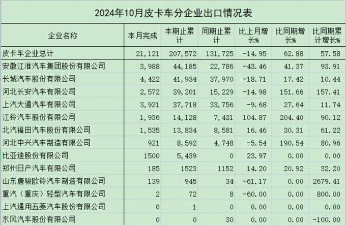 江淮皮卡10月出口量达到3988辆,1-10月累计出口达44185辆。去年前10个月的出口量为22786辆,同比增长高达93.91%,几乎翻了一倍。除此之外,长城、长安、大通、江铃、福田、中兴、比亚迪、郑州日产和雷达汽车均有不俗表现,几乎可以算得上是“全员上桌”。中国皮卡在海外市场表现出来的竞争实力让人惊叹不已。