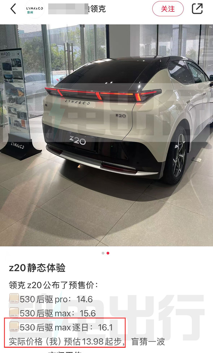 领克Z20将于12月22日上市,预售价14.6万-16.1万元,4S店销售预计最终售价13.98万起。领克Z20采用半隐藏式门把手,风阻系数0.25Cd,车身尺寸比极氪X大。