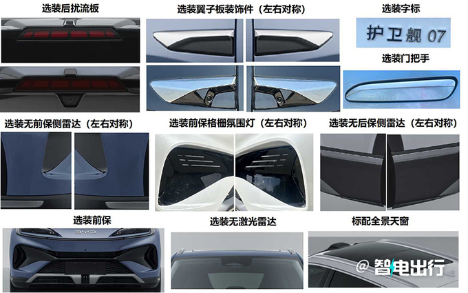 比亚迪新款护卫舰07更名为海狮07。车长较护卫舰07增加60mm,电机功率大幅提升。海狮07采用封闭式前脸,下方为梯形散热口,大灯造型与海豹相似,并加入贯穿式灯带。车顶配备无人机舱,换搭第五代混动技术。