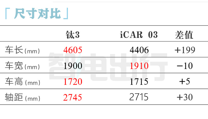 这个系列跟豹系列的区别是一个偏越野,一个偏城市。钛系列第一款车是钛3,从工信部公布的数据来看,它长4,605mm,轴距2,745mm,比奇瑞iCAR 03大,还提供无人机舱版,明年上半年上市。