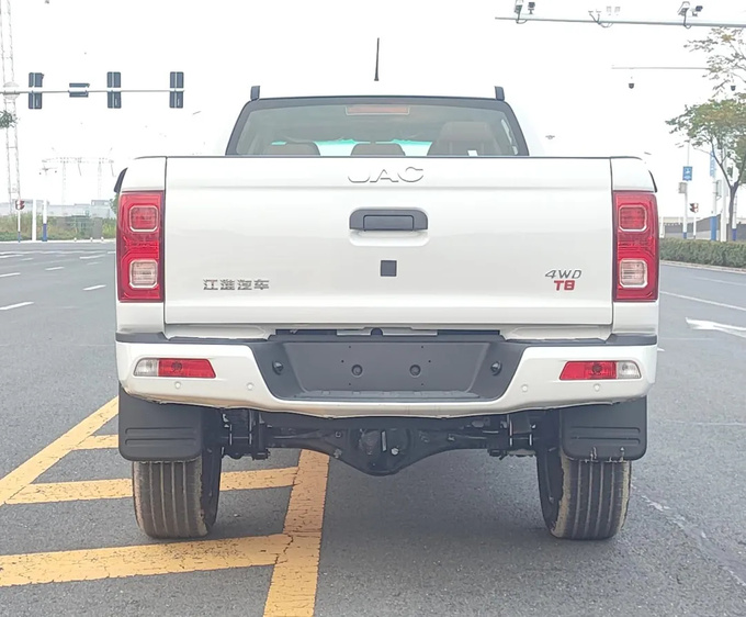 新款江淮T8申报的四款车型后悬架均为5片弹簧式后悬架。最高车速为150千米/时,额定载质量为495千克。轮胎规格有三种,分别是265/60R18,265/70R17,265/70R17LT 10PR。车型的接近角和离去角均为30/22度。