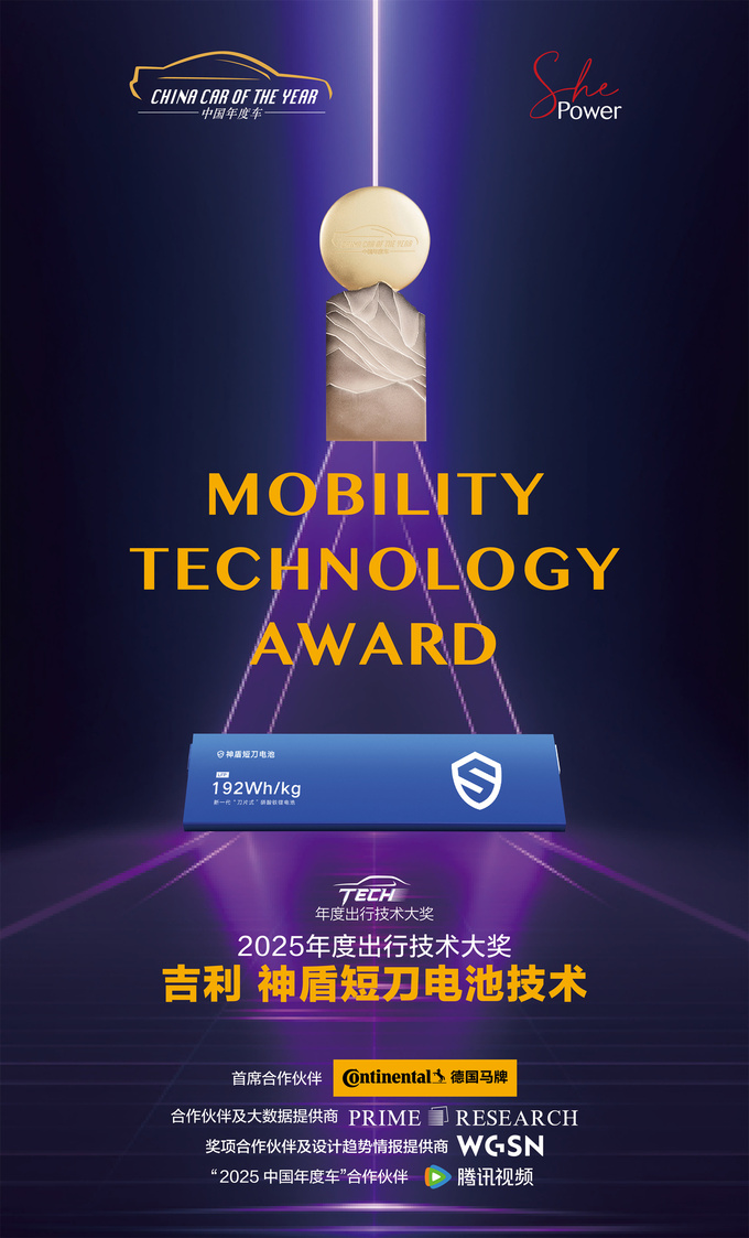 2025“年度出行技术大奖” :吉利 神盾短刀电池技术