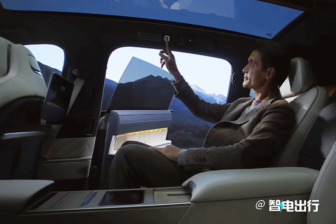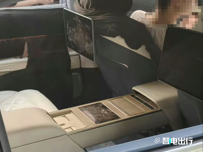 车内配备流媒体后视镜、15.6英寸AMOLED中控屏幕、256色漫反射环形氛围灯、10L智能冰箱(工作温度-2℃-55℃)、双14.5英寸OLED后排娱乐屏、8英寸后排多功能控制屏、免触式电动开合前备箱、4扇感应门合飞航头等舱座椅,支持45°超大倾角、18项电动调节、582mm超宽坐垫和11项联动调节。