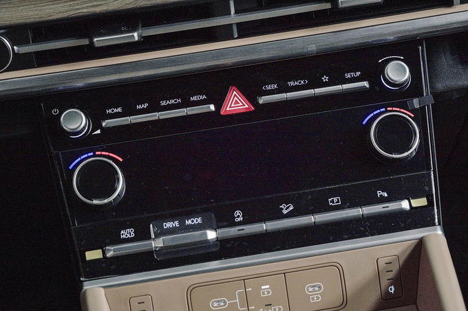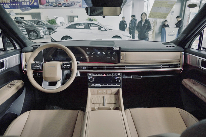 此外,第五代胜达还配备了Htrac智能四驱系统。这套系统可以根据路况和驾驶模式自动调整前后轮的扭矩分配,为车辆提供更好的操控性和稳定性。关于这款车具体的动态驾驶表现,我们后续有机会体验完再跟大家细聊。