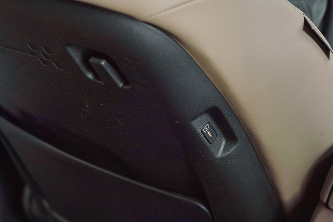 而为了让后排乘客也能使用中央扶手箱,扶手箱后方还设计了一个开启按键,这样的设计在整个行业来说都是不多见的。