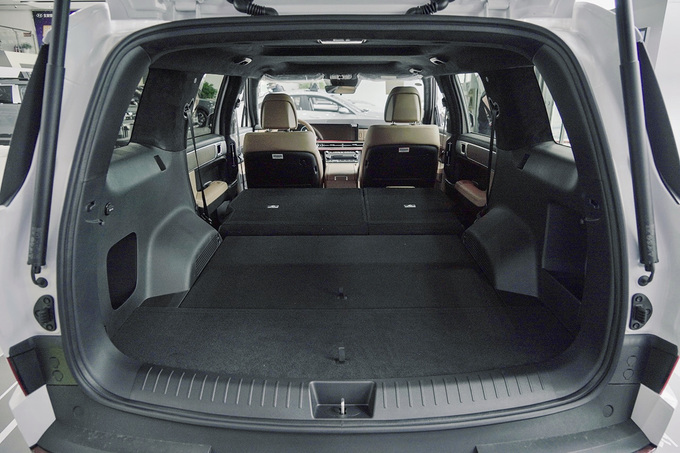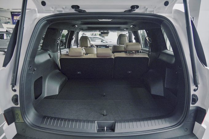 后备厢空间更是“重量级”,我们今天这台车是一个5座版本,常规状态下的后备厢容积就已经非??晒哿?,而当我们放倒后排座椅之后,空间便可拓展至2046L,而且后排座椅放倒之后空间做到了纯平,放置一些大件行李、甚至是搬运一些家具都是没有问题的。