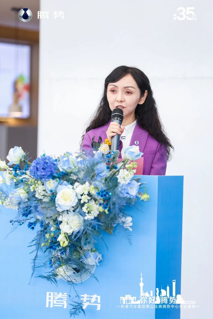 她坚信,利泰汽车集团与腾势品牌的强强联合,必将为佛山人民带来更加先进、可靠且以用户体验为核心的新豪华全优出行解决方案,开启全新的出行时代。