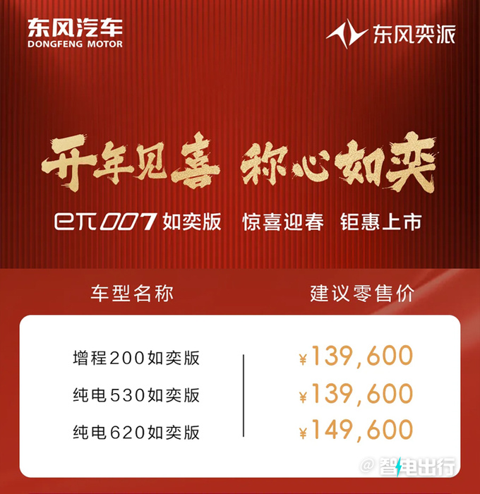 东风奕派eπ007如奕版上市,增程车型官方售价13.96万元,纯电车型官方售价分别为13.96万元、14.96万元。如奕版替代老款Pro版,增加7项标配,售价下调2-3万不等。即日起至2025年1月31日购车可享现金红包5000元,惠后售价13.46万-14.46万元。