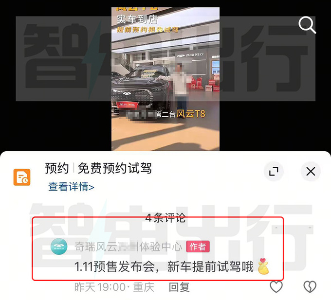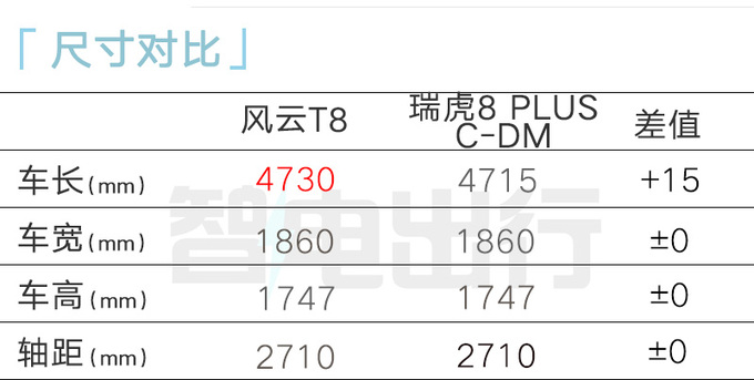 奇瑞风云体验中心销售表示,风云T8已到店,将于1月11日预售。新车采用与瑞虎8 PLUS C-DM相似的前脸,除车长外其它尺寸均相同,提供5/7座。有网友表示风云T8的售价在9万多,销售回复有可能。
