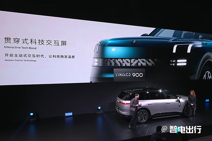 领克900车身尺寸比领克09大一圈,采用封闭式格栅、分体式大灯组和家族式“h”形日间行车灯,配备贯穿式交互屏。