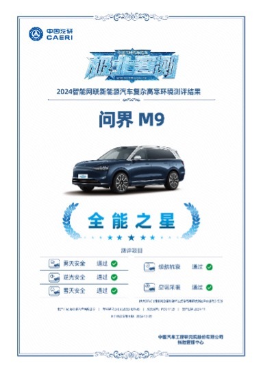 在充满挑战的五大连池问界汽车冬季试验场,一辆辆问界车型完成堪称“地狱难度”的极寒试炼,以可靠的表现,保障用户冬日出行无忧。不久前,中国汽研主办的2024中国汽研汽车指数“极北寒测”暨智能网联新能源汽车复杂高寒环境测试成绩公布,问界M9和问界新M7载誉归来,均以优异的成绩斩获“全能之星”荣誉称号。问界还荣获全场唯一“2024年极北寒测卓越品牌”荣誉称号。