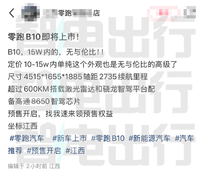 零跑表示:B10接棒而来,15万内首搭激光雷达城区智驾,将于3月10日预售。
