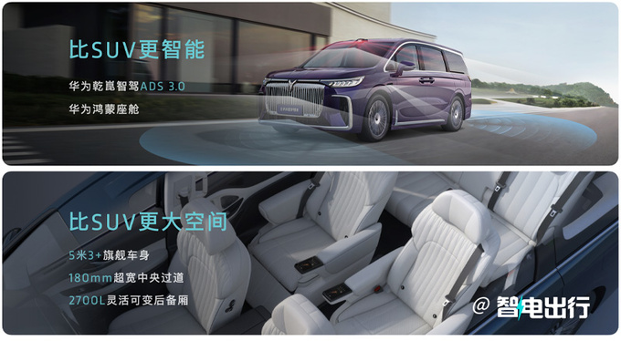 新梦想家卓越乾崑版在卓越鲲鹏版的基础上新增华为乾崑智驾ADS 3.0、鸿蒙座舱和29英寸高清AR-HUD,配备前排座椅按摩通风加热以及中排SPA级头等舱座椅。尊贵乾崑版在尊贵鲲鹏版的基础上新增华为乾崑智驾ADS3.0、鸿蒙座舱,并新增倍耐力静音轮胎、V-Sound殿堂音响、麂皮绒顶棚、负离子+智能香氛系统。