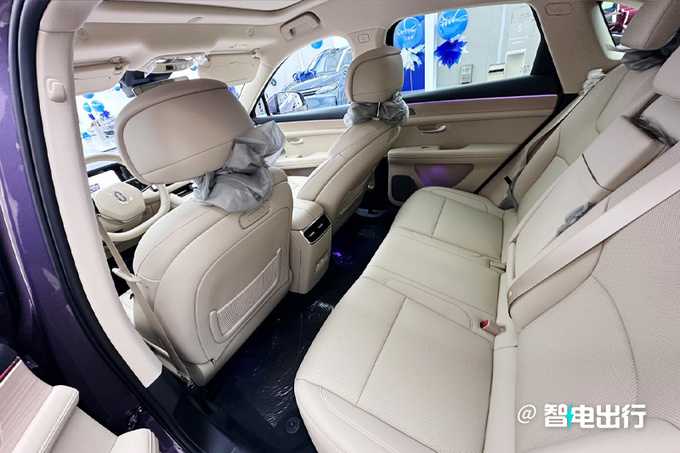 新车主推幻影紫和零度白车身色,采用新进气格栅和车身同色后包围,搭配20英寸运动轮毂。内饰新增赤茶橘,中控升级怀挡设计,腾出双50W手机无线快充+超大储物空间,副驾新增4项腿托(74°躺平角度)。另外像主驾头枕音响、HUD抬头显示、前排座椅加热、通风、按摩功能也没有缺席。