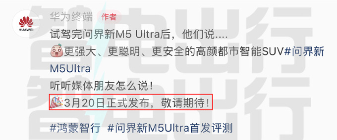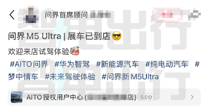 “史上最强”问界新M5 Ultra到店了,共3款版型,预售价区间23.8万-25.8万,现在预订还能享2000元抵5000元权益,可抵扣购车尾款,将于3月20日上市。
