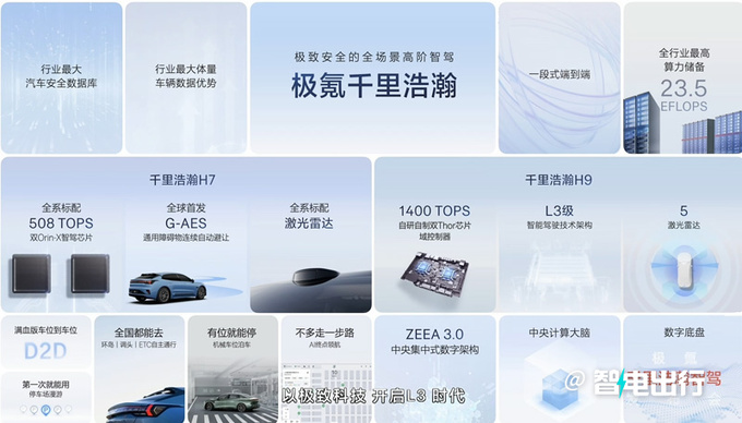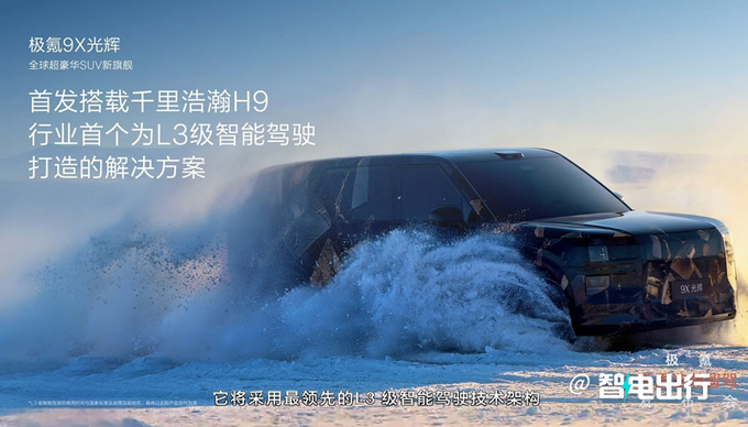 极氪旗舰SUV 9X光辉将于4月上海车展首发亮相,采用千里浩瀚H9,也是为L3级智能驾驶打造的解决方案,搭载自研双Thor芯片控制器,算力1400TOPS,通信效率零延时。