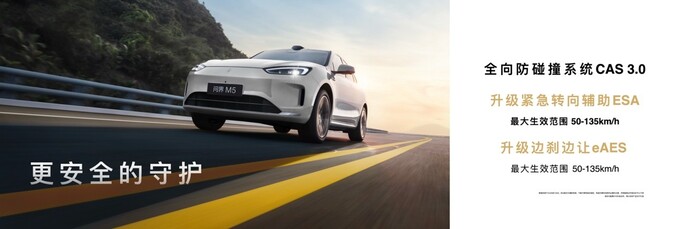 安全是最大的豪华。问界新M5 Ultra配备全向防碰撞系统CAS 3.0,新增紧急转向辅助ESA与e-AES自动紧急转向,支持边刹边让,生效范围为50-135km/h,能够在各种复杂路况下及时做出反应,为驾乘者提供更安全的守护。
