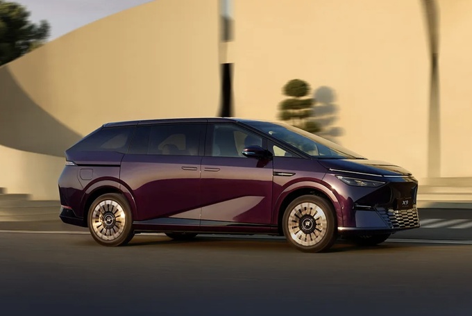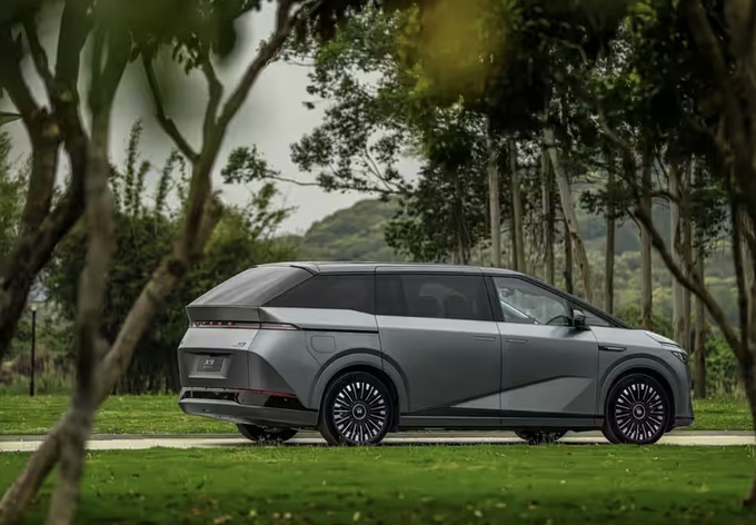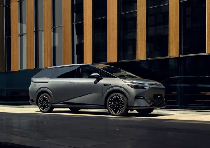 2025款小鹏X9整体延续了现款棱角分明的设计语言,前脸取消激光雷达,改为纯视觉智驾方案,两侧装饰板更显简洁。车身侧面线条硬朗,新增19/20英寸星耀悬浮轮圈,并提供哑光星舰灰、星云紫等全新配色,兼顾商务与年轻化需求。