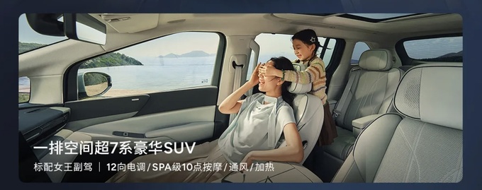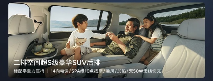 车内新增“过道版零重力座椅”,前排乘客落座时也可一键开启零重力模式,并支持自动角度调节。前两排座椅标配加热、通风及按摩功能,材质与按键质感同步提升。二排新增隐藏式220V电源接口,便利性更优。