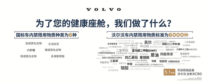在北欧,人们崇尚自然,追求健康与宁静。沃尔沃汽车将这种理念融入车内环境的打造中,对材质与空气质量的把控远超国家标准,致力于为用户打造如置身北欧森林般纯净的驾乘空间。新车型开发中,国家明确要求的禁限用物质为6种,而沃尔沃汽车管控的禁限用物质超过6000种,旨在为驾乘者打造出真正健康的移动空间。对于挥发性有机化合物(VOC),国标管控8种,在此基础上,沃尔沃汽车额外增加11种,达到19种。甚至对于安全气囊引爆后的危害气体浓度,沃尔沃汽车也有着严格的限制。早在20多年前,沃尔沃汽车便成立了“鼻子小组”,通过嗅觉实测与评分,严格把关内饰气味,保障用户的呼吸品质。以全新XC90为例,其搭载双效增强型空气净化系统,PM2.5/PM1/PM0.3去除率均超95%,花粉去除率超99.9%,空气传播病毒去除率超97%;同时,座舱采用健康环保材质,拥有婴儿皮肤可直接触摸的车内环境,即使新车在高温下,也同样无异味。
