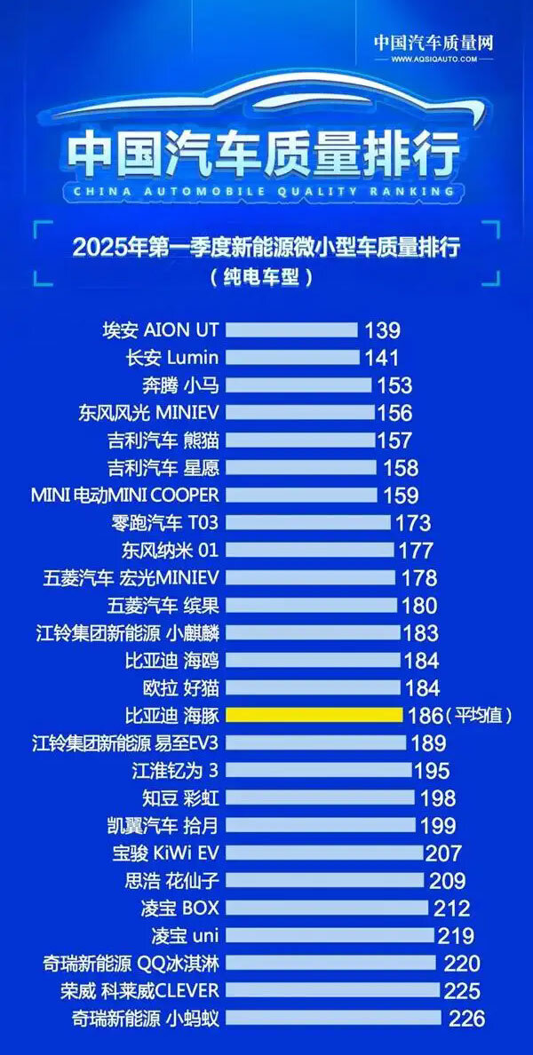 安全实力最终要由市场检验,在中国汽车质量网最新发布的纯电小车质量排行榜单中,埃安UT稳居榜首。而且在用户较为关心的可靠性与耐久性维度上,埃安UT以过硬的整体表现回应了市场期待——这正是一辆家用车最本分的“超出预期的可靠”。