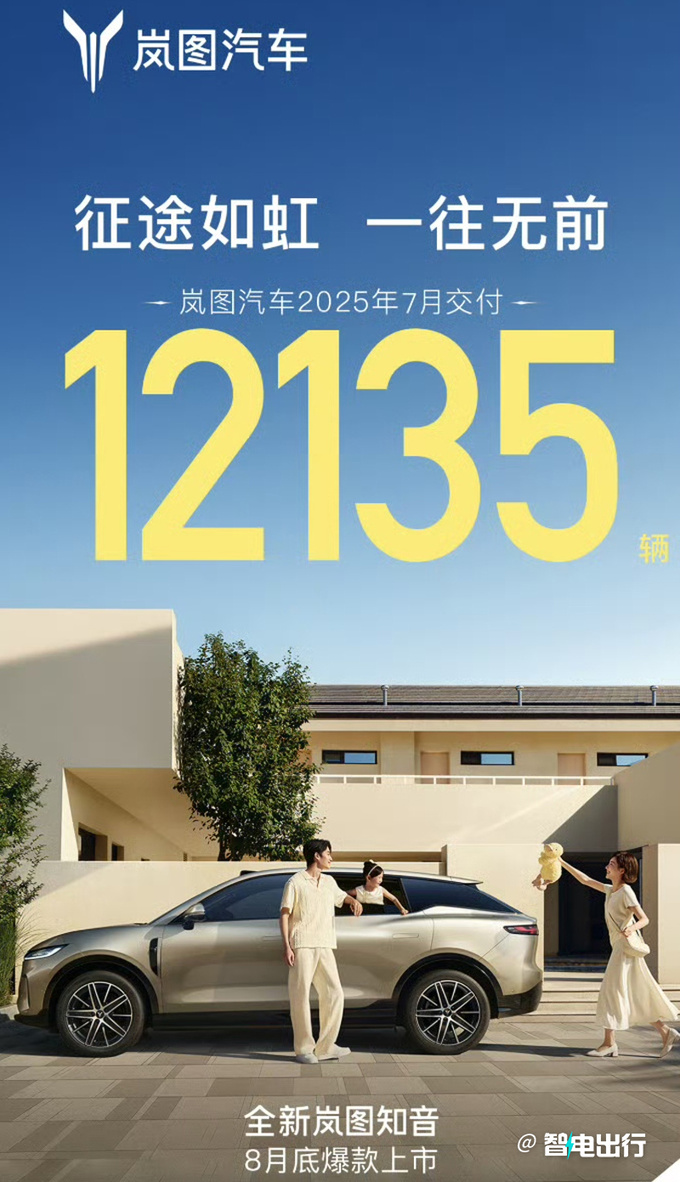 7月份,岚图一共卖出去12135辆车,比去年多了整整102%,这已经是连续第六个月销量往上走了。前七个月,归了包堆卖了68263辆车,比去年多了88%。