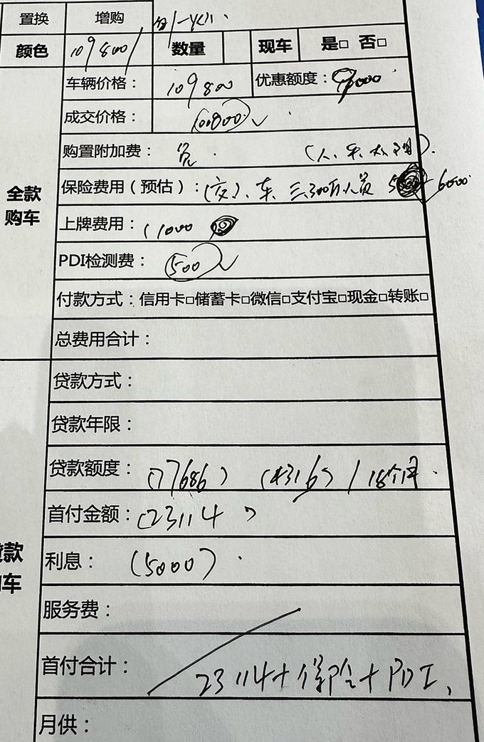 销售:厂家给5000元利息补贴。比如贷款77686元,分18期每月还4316元,首付就是100800减77686,只需23114元,再算上保险和PDI检测费用,3万以内就能办齐。?