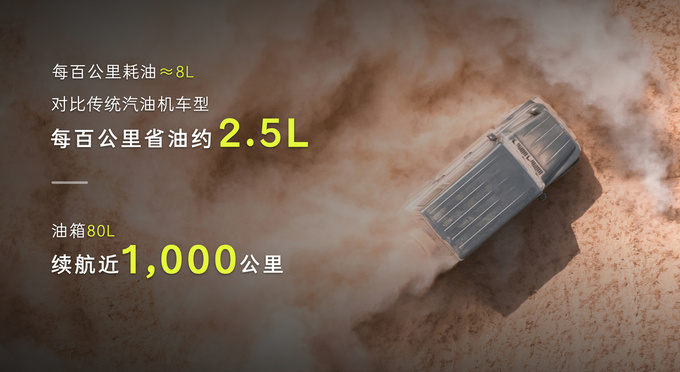 T01柴油版供油方式采用博世高压共轨技术,喷油压力达 2000bar,搭配八孔喷油器,实现精准雾化和高效燃烧,综合油耗仅为8.5升/百公里。80升油箱加满后,可实现近1000公里的续航表现,长途穿越无需频繁补能。对比汽油版车型,每百公里省油2.5升,按年均2万公里计算,柴油版一年可节省近4000元。