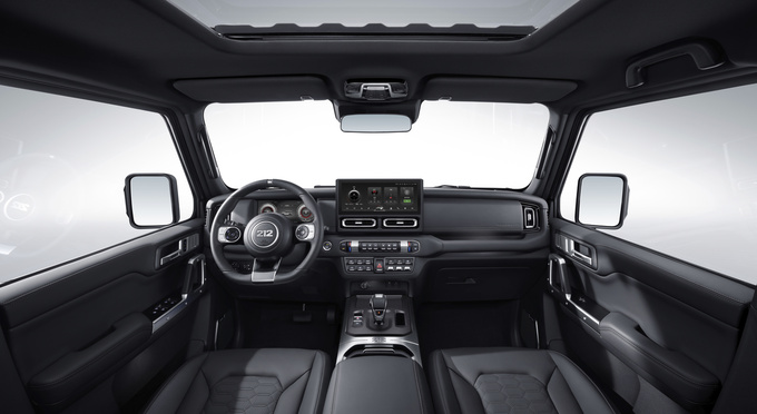 升级款T01检阅官传承东方美学,推出四款全新车色:龙血红、鸣沙黄、月岩灰、星辉银,述说中国越野文化底色与审美品味本色。全新升级的黑棕内饰配色,营造视觉高级感座舱氛围;内饰软性皮质包覆率超过80%,触感细腻,焕新提升驾乘质感。新增的方向盘加热和座椅通风功能,搭配人体工学座椅和座椅按摩功能,令舒适越级体验贯彻越野每一程。前后差速锁由选配升级为标配,搭配前后50:50动力分配与三种模式的分时四驱,共同实现更好、更稳定、更硬核的脱困能力。在专属仪式感方面,升级款T01检阅官配备的防空灯在小于60km/h的低速越野时,支持向左180°调节、向右30°探照;新增专属迎宾灯,每次解锁车门都能投射212专属光影,并支持自定义图案和颜色。