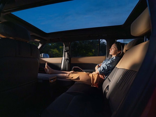 与行业其它车型二三排放平成床不同,福特智趣烈马的一、二排座椅可实现真“一键成床”,无需用户手动收纳头枕,更无需腾挪后备箱行李,即可快速形成平整舒适的卧榻,安心舒眠。配合B柱出风口和C柱充电口这对“枕边的床头柜”,色温可调节的车内阅读灯,恒温舒适与充电自由兼得,福特智趣烈马真正实现了“睡在星空里,醒在霞光中”。
