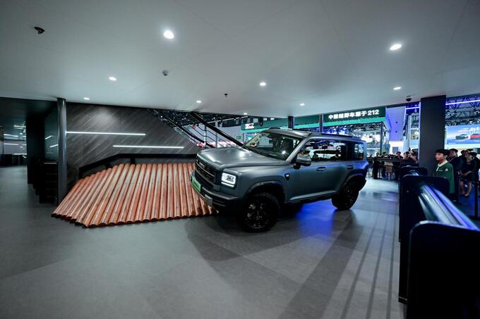 其中,哈弗猛龙2026款作为一款硬派风格的新能源泛越野SUV,在造型、动力、续航与智能等维度实现全面进阶。展会现场专设动态体验区,赵永坡总与乌啦啦共同挑战包括楼梯路段、陡坡、滑轮组在内的多项高难度越野科目,充分展现车辆强悍的全路况通过性。该车配合Hi4 2.0智能四驱系统及后桥电控机械牙嵌式差速锁,面对复杂地形依然从容稳健,堪称新能源泛越野SUV领域的性能标杆与实力担当。