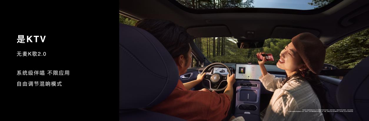 娱乐场景方面,无麦K歌2.0系统级伴唱打造移动娱乐空间,HUAWEI MagLink车载屏支持双屏独立娱乐和前后排共同创作,让座舱随时化身影院/画室,满足家庭互动需求。