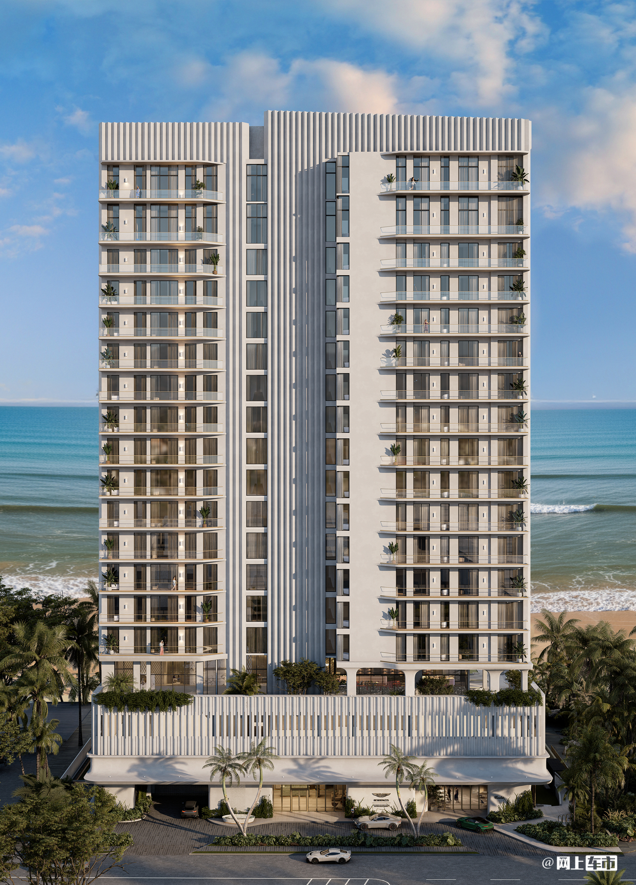 这次的住宅依旧延续了阿斯顿·马丁的“设计DNA”,品牌设计团队全程参与,就是为了把跑车的精致工艺、流畅线条和高科技搬进房子里。比如18层的楼里,专门留了两层做空中复式,总共8套,还有两层停车场,配套更是拉满——高端餐厅、手工烘焙坊全有,出门就能踩沙滩,完全把“顶配生活”打包好了。