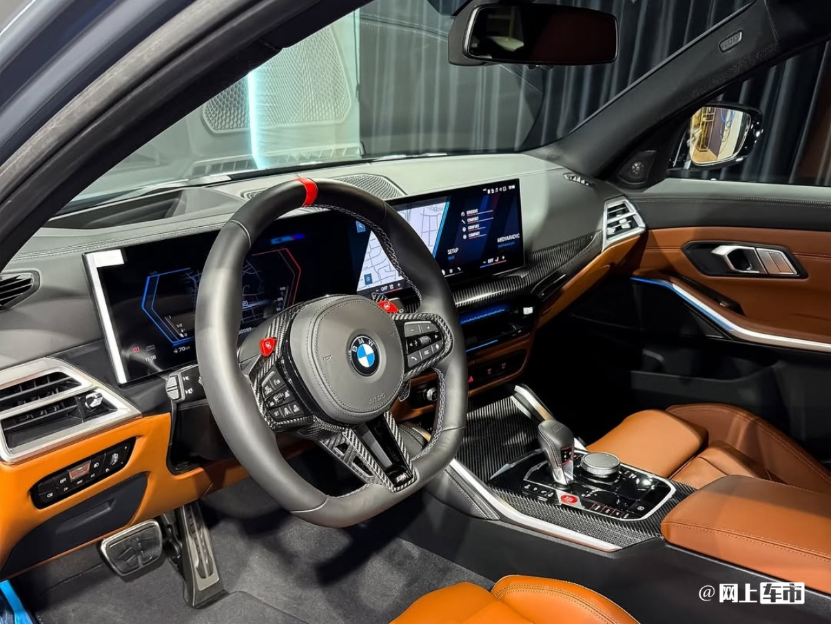 车身用了不少碳纤维组件,像多边形进气口、后视镜罩、尾部扩散器,还有车顶扰流板,不仅让运动范儿更足,还能让空气流动更顺畅,轻量化和颜值都兼顾到了。座舱里的M碳纤维座椅,又轻又舒服。