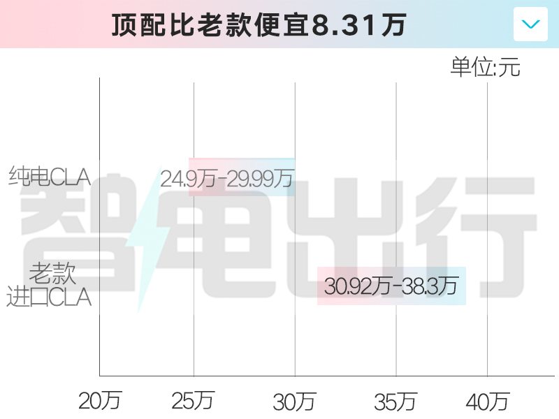 先说说新老CLA的差别,这代彻底转向电动化了。老款CLA是纯燃油车,主打轿跑颜值和进口身份,动力最多也就2.0T。新款直接用上MMA平台的纯电技术,CLTC续航干到866公里,而且标配800伏架构,充电10分钟能补370公里,不输加油效率??占湟哺泄没?,轴距加到2,830毫米,比老款宽敞不少,实用性上去了。