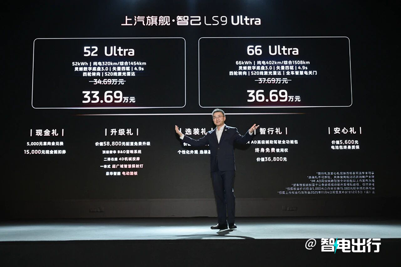 智己在硬件和机械层面向来都是量大管饱还不贵。而这次的预售价格从33.69万元起,这价格直接正面挑战各大9系SUV。