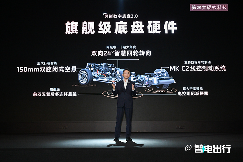 智己的传统艺能灵蜥数字底盘也来到了3.0,后轮转向更是达到夸张的24度,让一台全尺寸SUV的转弯半径仅有4.9米,拒绝“航母调头”。配合上电控转向、线控制动,操控起来大车感和晃动会少很多。