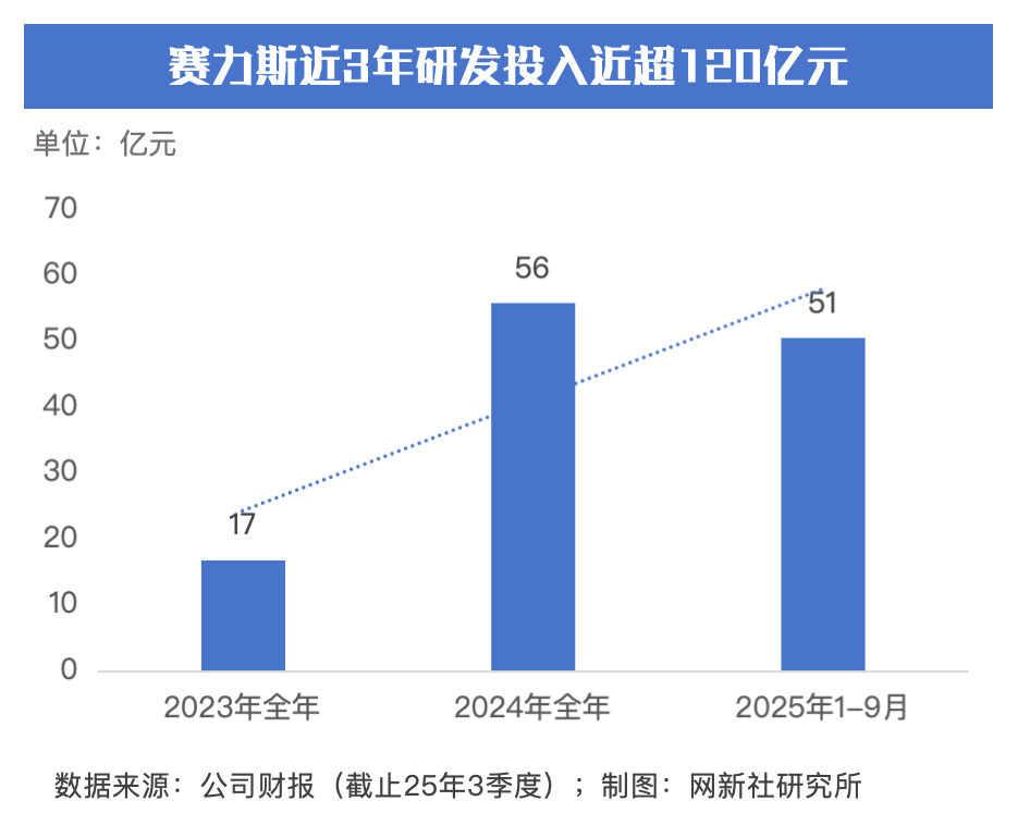 财报显示,赛力斯近三年研发投入超120亿元,今年前三季度达51亿元,接近去年全年水平。公司现金储备约598亿元,较去年末增长98亿元,但资产负债率维持在76.4%,财务结构仍待优化。