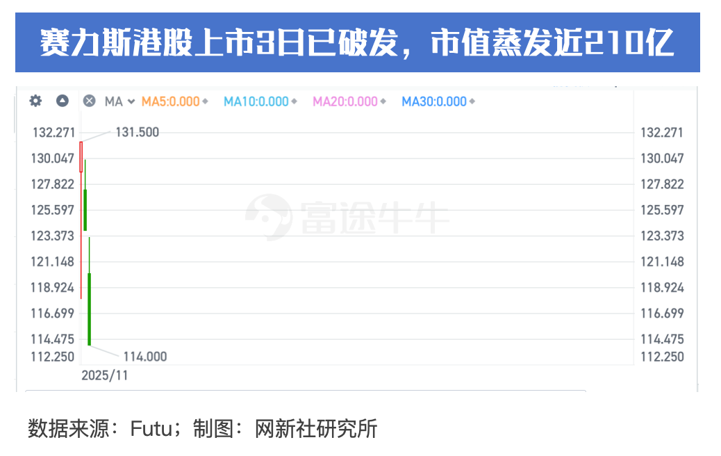 网新社研究所:赛力斯在港股上市遭遇波折。11月5日挂牌后,发行股价收平。上市3日,公司股价已破发13.3%,市值蒸发约233亿港元。此次上市募资140亿港元,本意强化资金实力,但市场反应冷淡,凸显投资者对短期盈利能力的担忧。