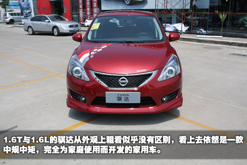 1.6T与1.6L的骐达从外观上粗看似乎没有区别,看上去依然是一款中规中矩,完全为家庭使用而开发的家用车。