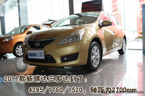2011款新骐达三围达到了4295/1760/1520,轴距为2700mm,比现款骐达4250/1695/1535mm。长45mm,宽65mm,低15mm。加长加宽目的是让新骐达车内有更多的利用空间。