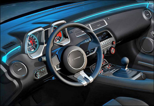 内饰方面,Camaro科迈罗车内空间充满强烈的智能科技气息。方向盘采用三幅式真皮包裹,并且集成了诸多功能键。左边的功能区主要是集中了定速巡航功能,右边的功能区集中了音响远程控制功能,确保驾驶者良好的人机交互感受。Camaro科迈罗的仪表颇具未来科幻风格。左边仪表显示时速以及水温,中间显示胎压检测等车辆诊断信息,右边仪表盘显示转速以及油箱状态。它搭配先进的幽蓝环境LED照明技术,即使在夜间也会让让驾驶者一目了然,极大提高驾驶安全性。