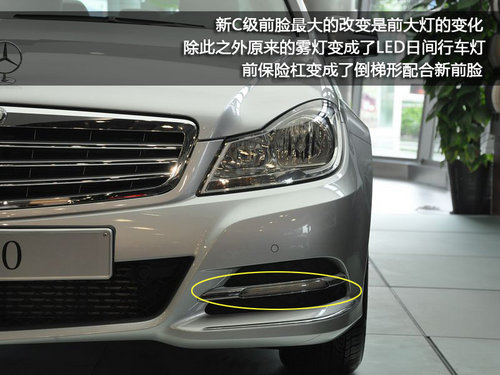 外观变化主要集中在前脸,也是此次外观方面改款最明显的地方。全新设计的大灯、保险杠以及新增的LED日间行车灯让新款C级前脸变得更加时尚、年轻且更有立体感。