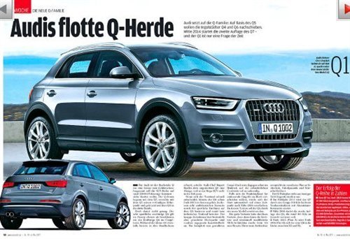报道称,奥迪Q1或将会基于A1的平台开发,并采用更加跨界的外观。但也有消息称,Q1会基于新一代A2或A3的平台开发,预计最快于2013正式发布。