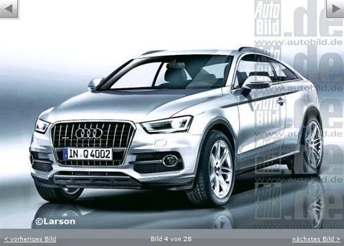 未来的奥迪Q4或将同保时捷的紧凑型SUV Cajun同平台设计,预计有三种造型:3门coupe、5门运动版以及一个更偏向越野的版本。而这款车预计于2017年推出,时间要晚于此前的报道。