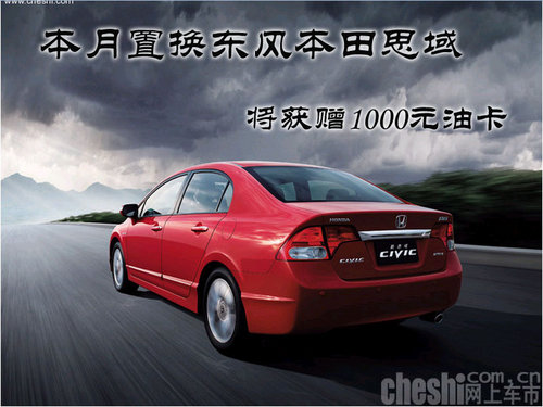 本月置换东风本田思域将获赠1000元油卡