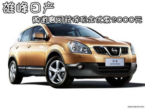 逍客是一款融合了高端两厢掀背轿车的各种优秀特性,以及SUV、HB等诸多设计风格的全新城市车型。近日,编辑从雄峰日产店获悉,现在购买日产逍客车型即可获得现金优惠2000元。详情请见下表: