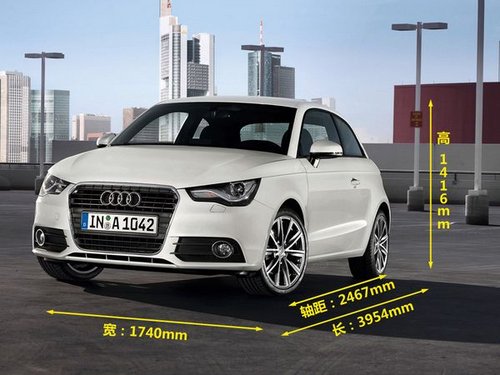 这款奥迪A1的长宽高分别为3954mm.1740mm(包含后视镜宽度1906mm)、1416mm,轴距为2469mm,270L的后行李箱容积是A1的一个优势。