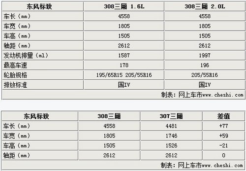东风标致即将推出的308车型与307相同,都将推出三厢版本和两厢版本。在车身尺寸方面,新款308的长X宽X高分别达到了 4558X1805X1505mm。与307相比车身尺寸有所增加,不过这款车的轴距依然为2612mm。在动力系统方面,这款车依然采用1.6L和 2.0L发动机,广大网友备受关注的1.6T将不会搭载在这款车上。