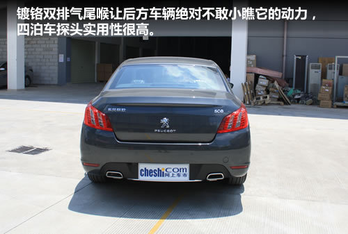 508在尾部设计显然是精心而为之,镀铬双排气尾喉让后方车辆绝对不敢小瞧它的动力,四泊车探头实用性很高。而在尾灯部分,灯组内置3排6颗LED灯泡,呈现出狮爪式造型,与标致新的家族式标识非常吻合。LED高位刹车灯也体现出很好的安全性。